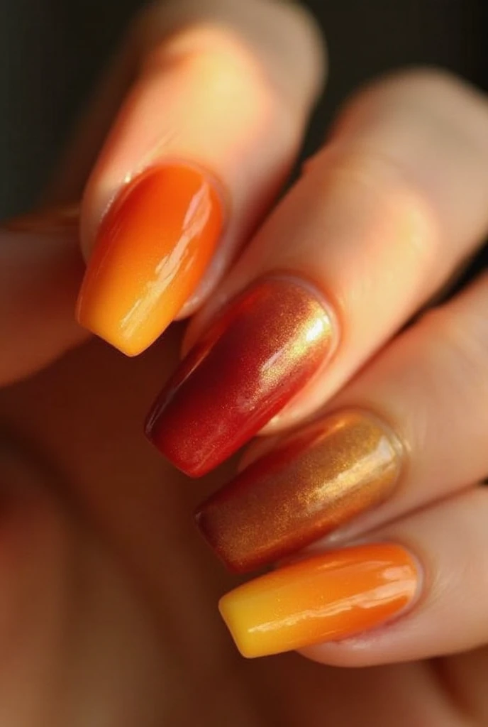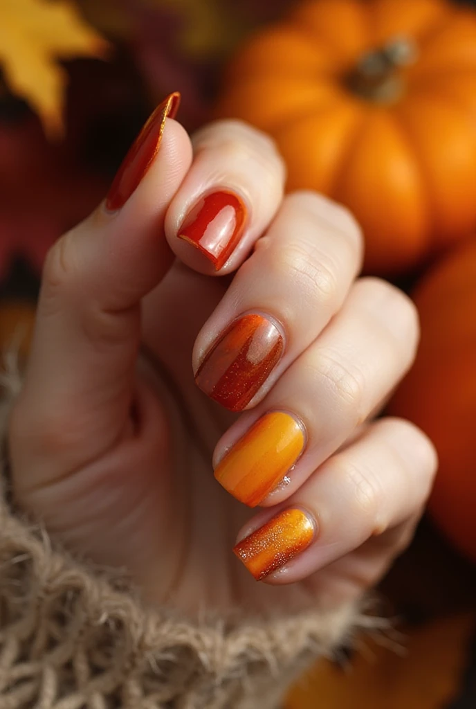 Ombre nails are a timeless favorite, and fall-inspired shades make them even better. Blend together colors like burgundy and gold, orange and nude, or green and brown for a seamless autumn gradient.