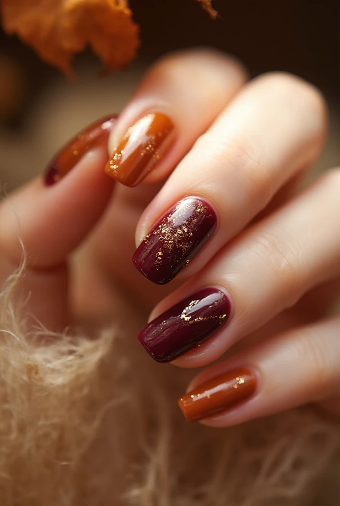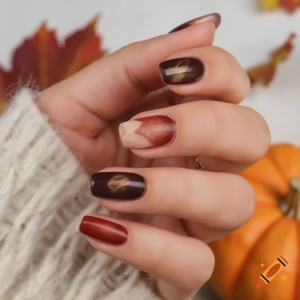 Warm Brown & Red Fall Nail Designs for Short Nails ❤️