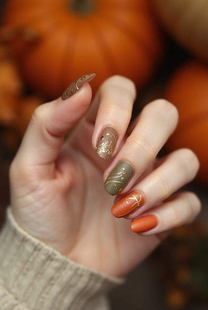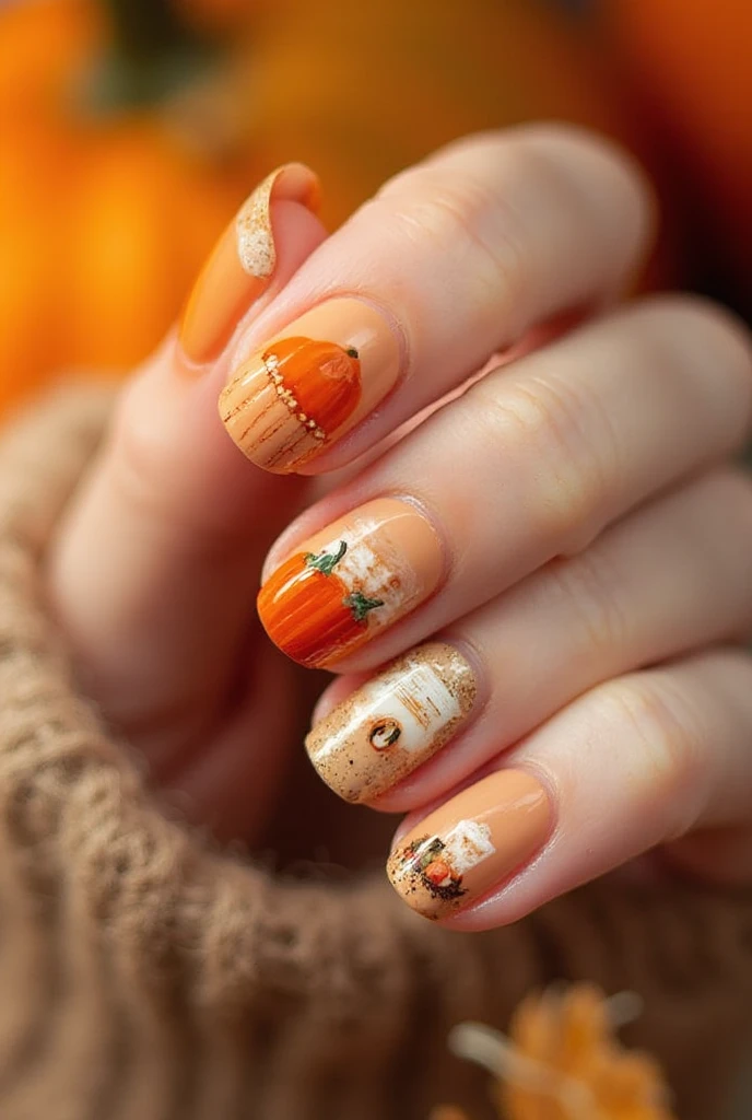 Pumpkin Spice Inspired Nail Designs for Short Nails 🎃