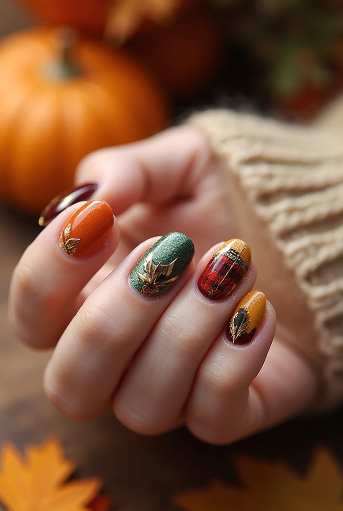 If you think only long nails can look glamorous, think again. Short nails can pull off gorgeous designs that feel fresh and trendy for fall. Try metallic foils, plaid prints, or glossy jewel tones to create luxurious looks.